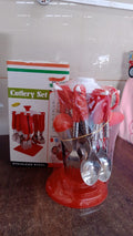 Luxury Cutlery Set for Dining Table Stainless Steel 26-Piece Set, 6 Tea Spoon, 6 Dessert Spoon, 6 Dessert Fork, 6 Soup Soon, 2 Pc Spice Container, With Stand (1 Set)