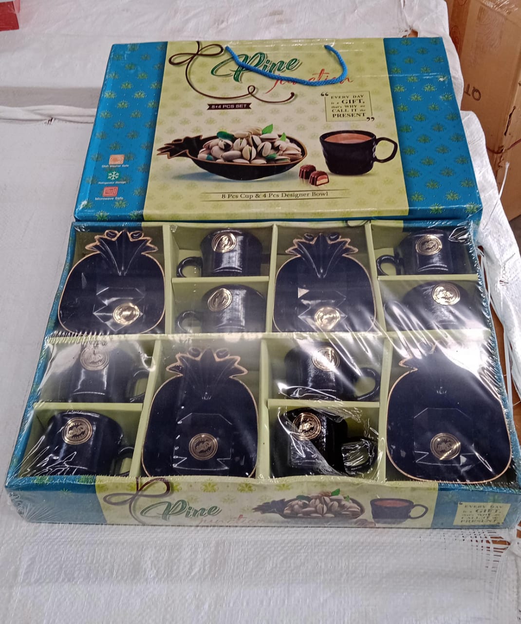 Pine Junction Ceramic Tea / cups / Mug Set With Pineapple Shape Serving Bowl (12 Pcs set)